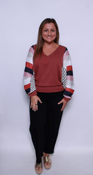 Orange Thankful Ribbed Crew Neck Thanksgiving Sweatshirt