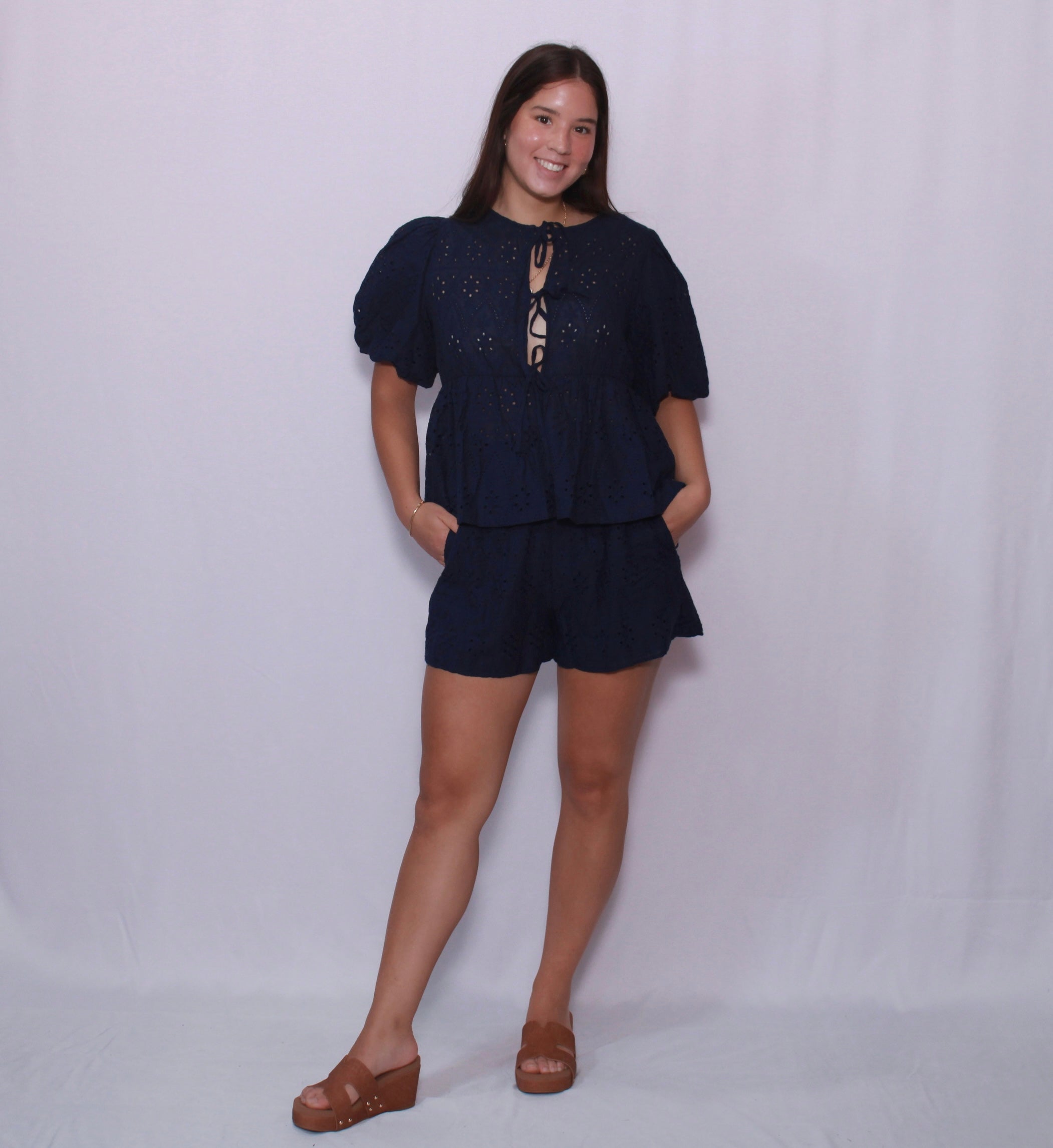 Get ready to elevate your summer wardrobe with our WAISTED ELASTIC EYELET SHORTS WITH POCKETS! Made from 100% cotton (S) and 100% polyester (L), these shorts are both comfortable and stylish. With an elastic waist and convenient pockets, you can stay cool and carry your essentials with ease. Don't miss out on this must-have for warm weather!