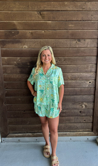 Tropical Resort Print Pull-On Shorts