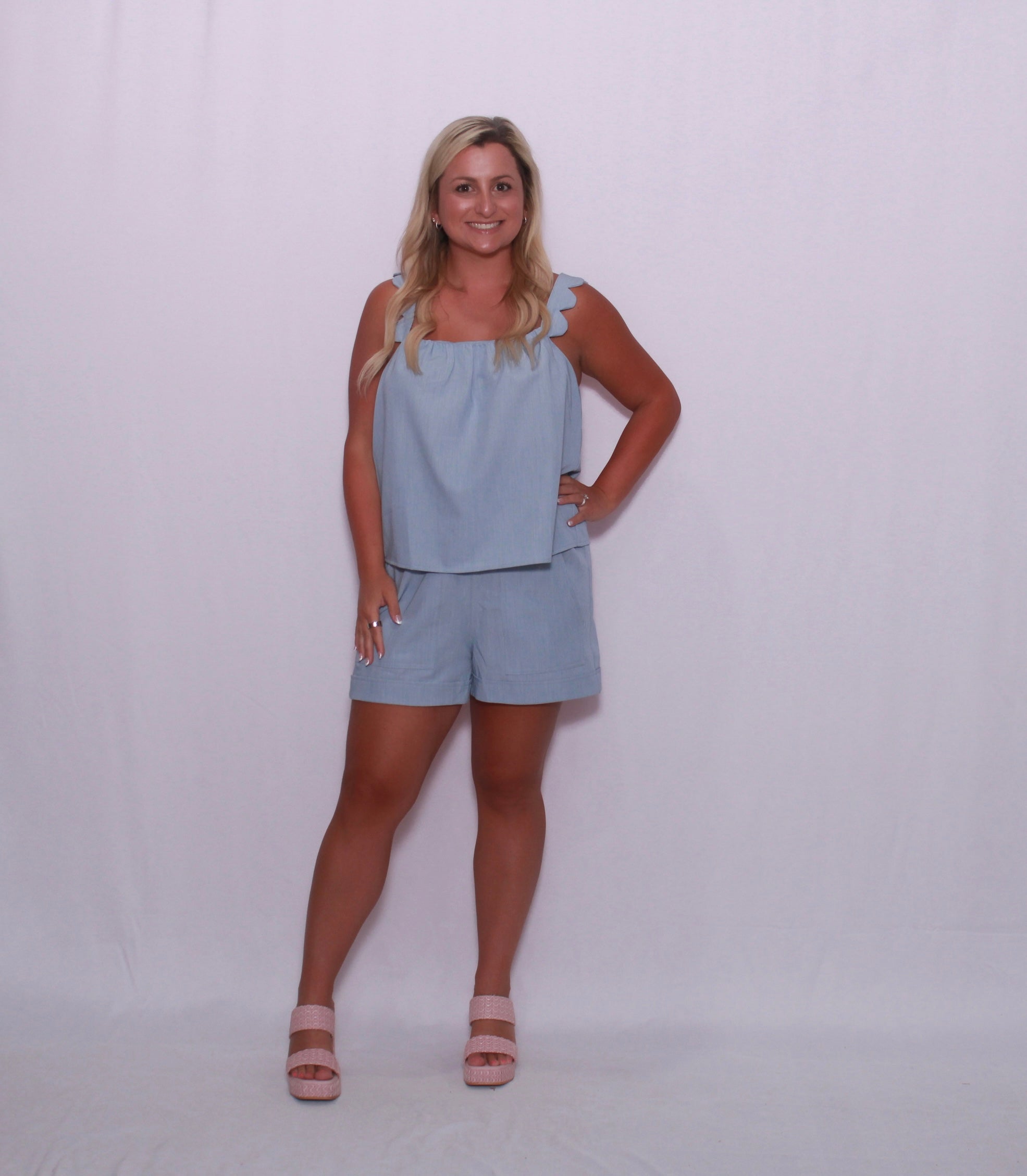 The Scalloped Strap Tank Top is made of a luxurious blend of polyester, rayon, and spandex, providing comfort and versatility. With a stylish scalloped design and adjustable straps, this top is perfect for any occasion. Add it to your wardrobe today and elevate your style game!