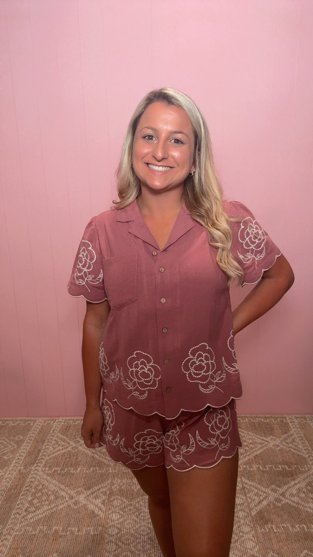 Fall in love with this Linen Floral Embroidered Button-Up Top! Made from a blend of linen and cotton, this top features delicate scalloped edges and stunning floral embroidery. The button front closure and front chest pocket add practicality while the short sleeves keep you cool. Perfect for any occasion, this top is not to be missed!