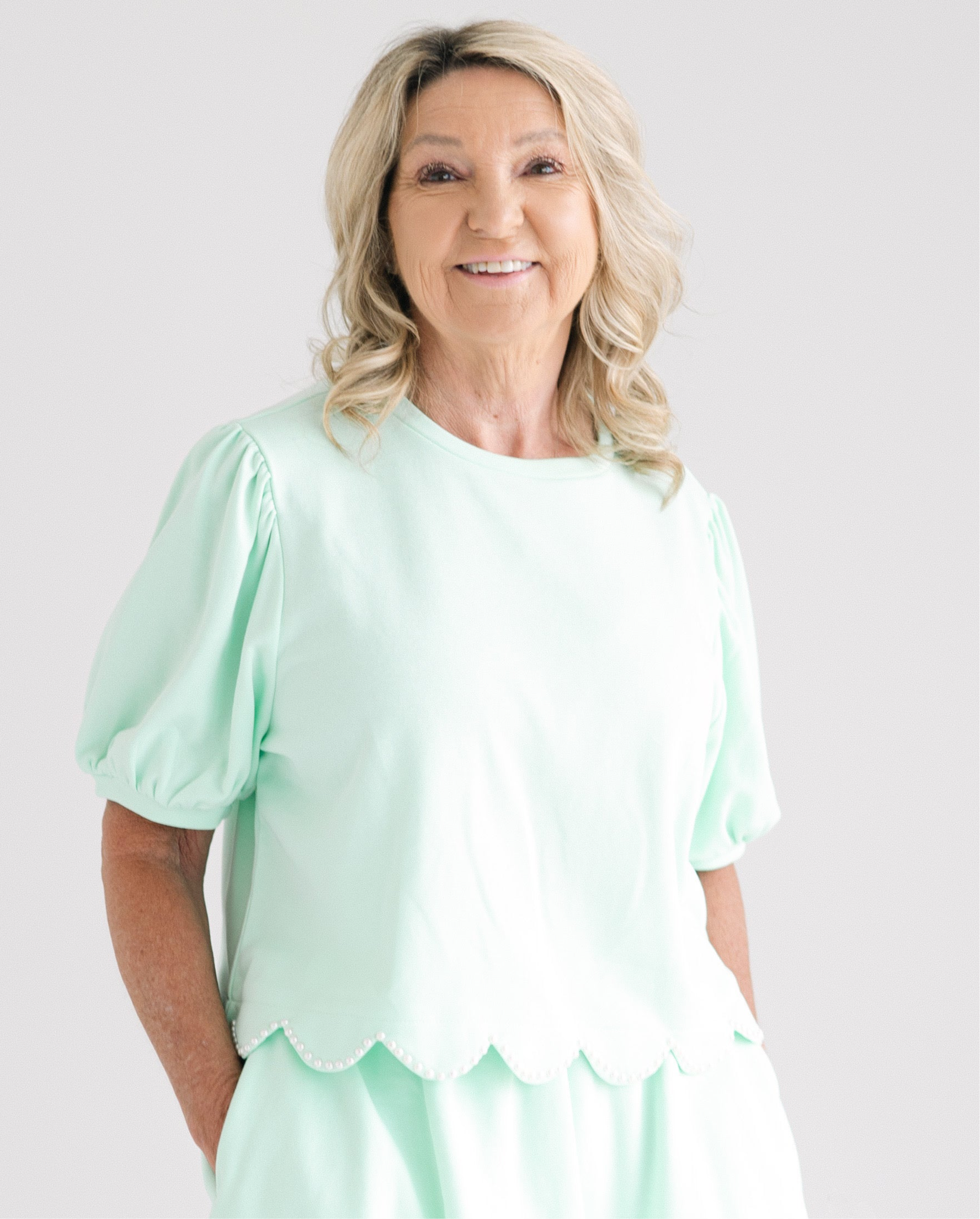 Scallop Hem Pearl Studded Detail Terry Shirt