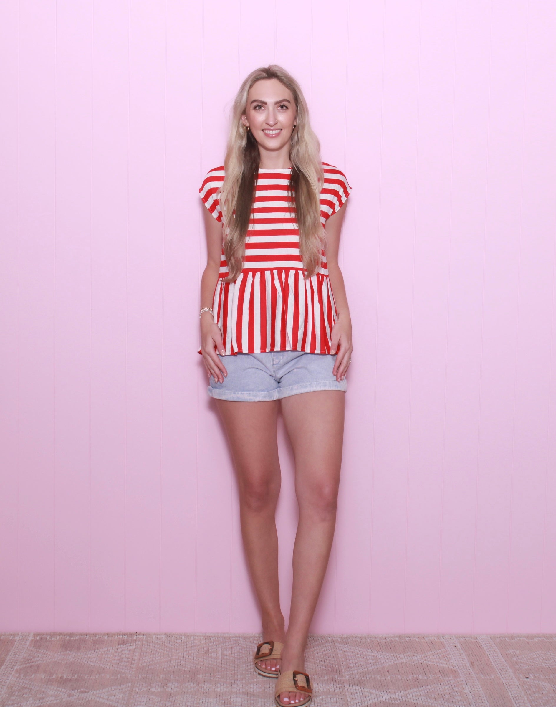 DROP SHOULDER WOVEN STRIPED TOP