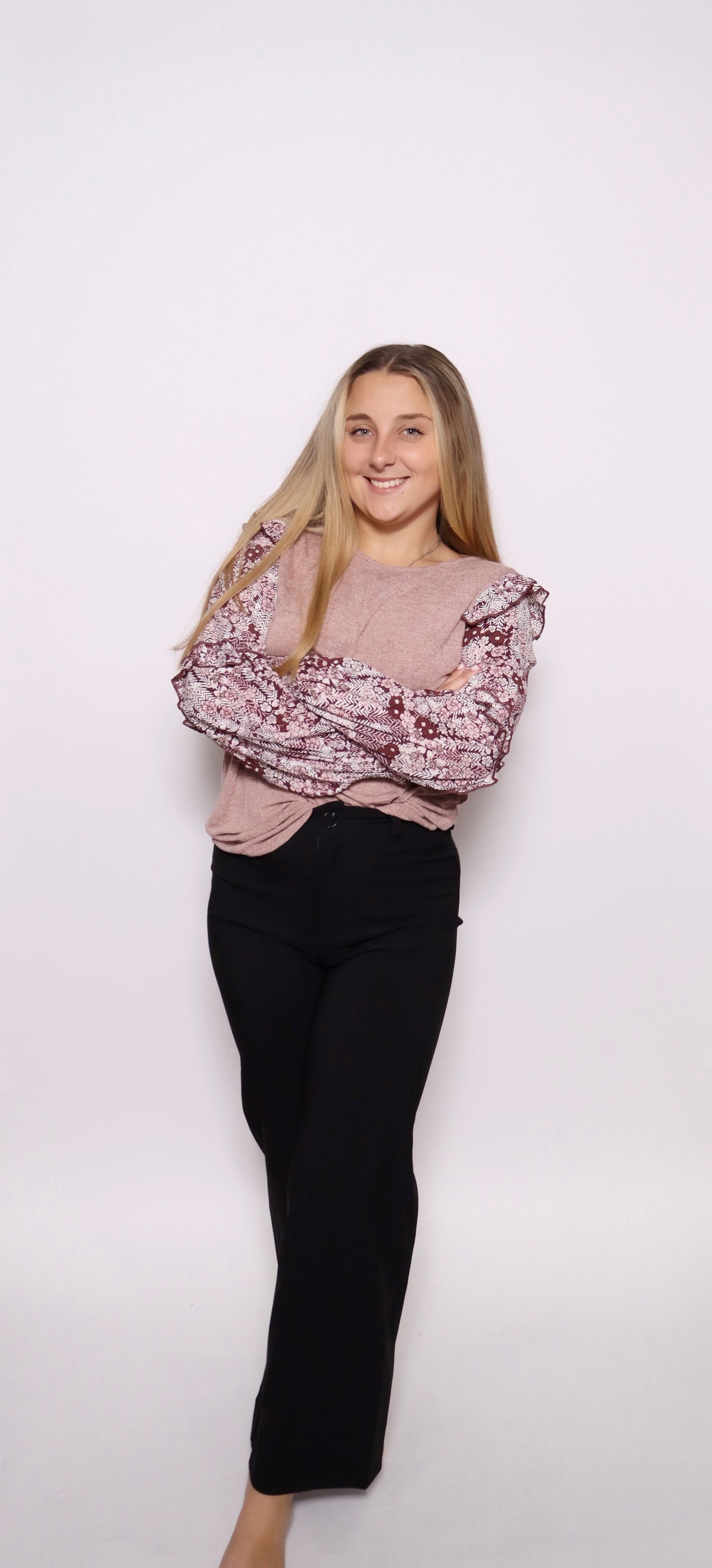 This crew neck blouse symbolizes a perfect fusion of contemporary fashion and timeless grace. Pleats along the sleeves create an alluring sophistication while the floral pattern adds a playful and romantic flair. Puffed sleeves add a hint of chicness and femininity, perfect for making a statement in your wardrobe. Polyester/Viscose/Elastane Size Info: US Size Range. Small 0-4, Medium 6-8, Large 10-12, XL 14-16, 2X 18-20. See size chart for approximate measurement